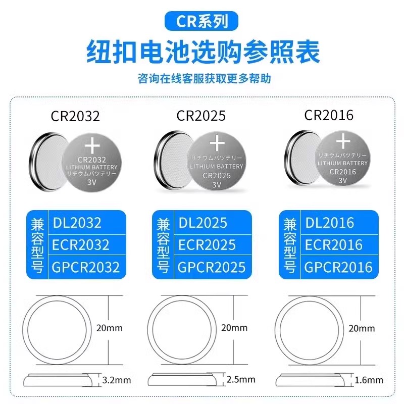 CR1632 CR2016 CR2450 CR1220 CR1616汽车钥匙遥控器测试仪电子秤体重秤 3V纽扣电池CR2032 CR1620 CR2025