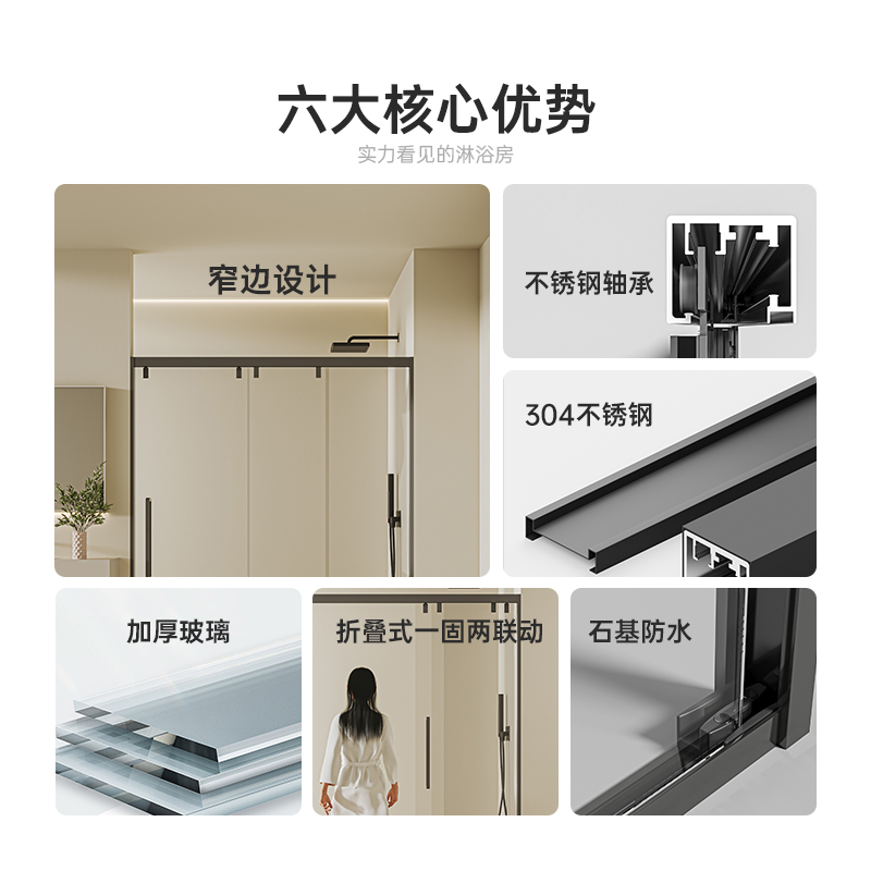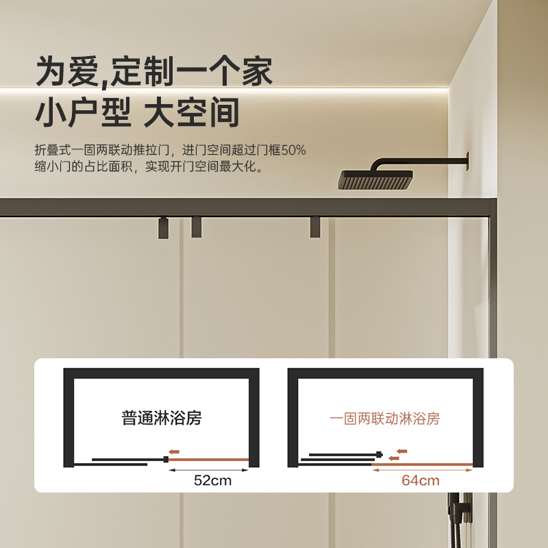 豹龙整体淋浴房钢化玻璃家用隔断卫生间一体式 洗澡间干湿分离浴屏