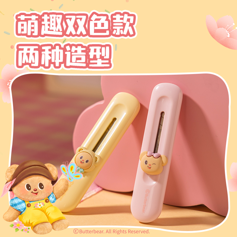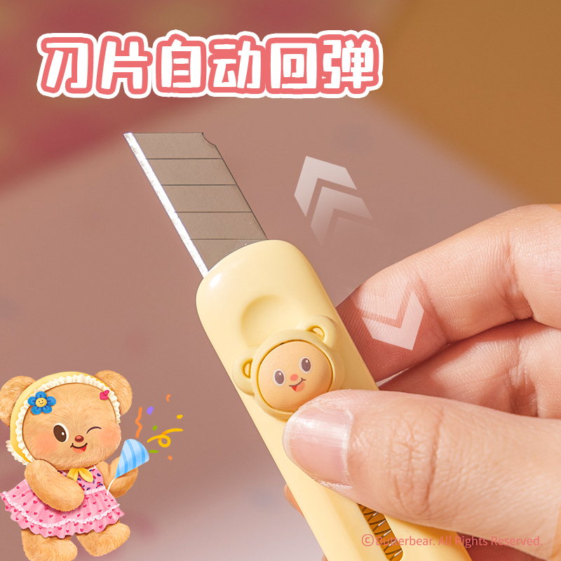 得力黄油小熊美工刀壁纸刀快递开箱工具手工美术刀合金钢金属小号裁纸用刀小刀拆纸刀子