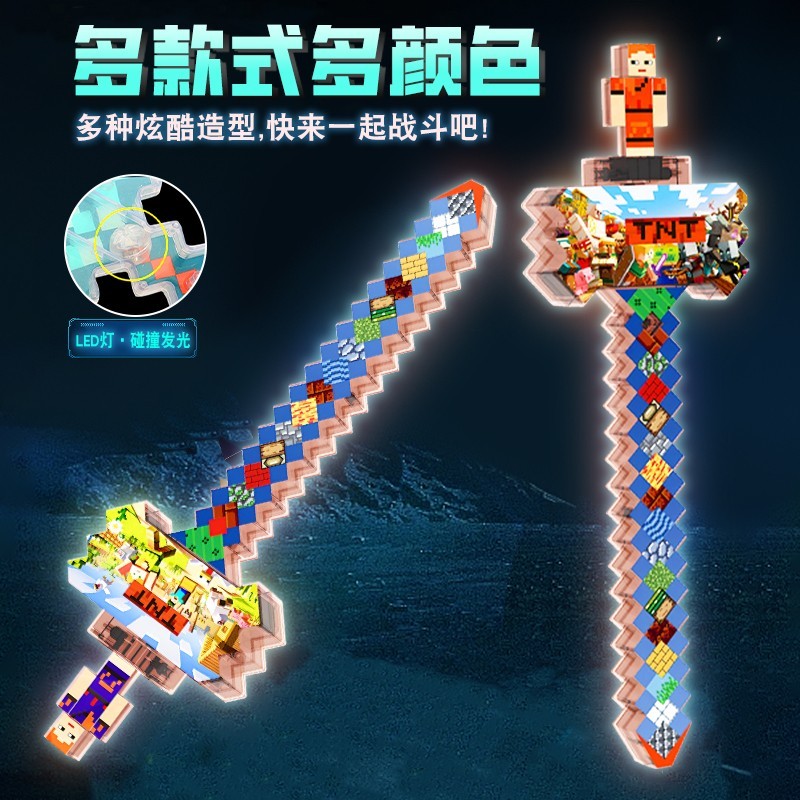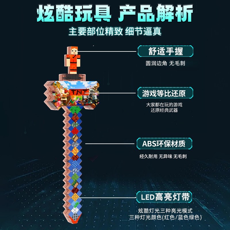 我 世界大电影周边钻石剑儿童Minecraft玩具男孩模型摆件小夜灯