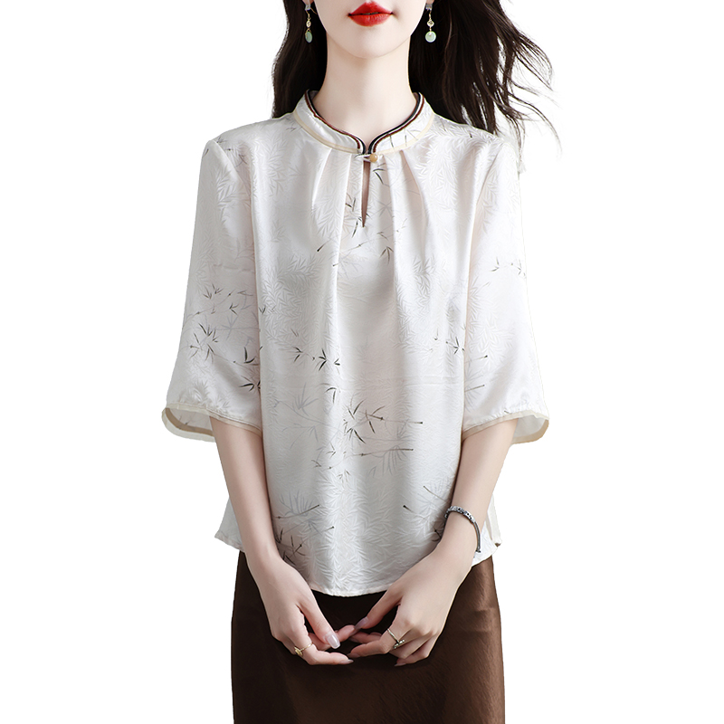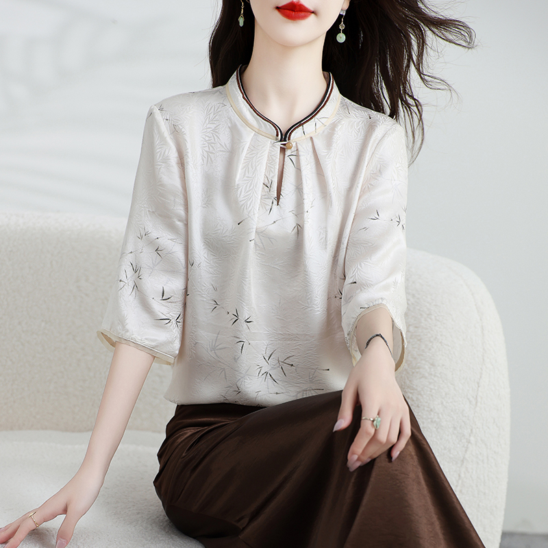 高级真丝丝绒上衣女九分袖 小众外套春秋 桑蚕丝国风妈妈复古新中式