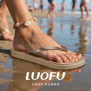 罗敷LUOFU新款 懒人外穿凉拖 人字拖女夏防滑室外海边度假平底时尚