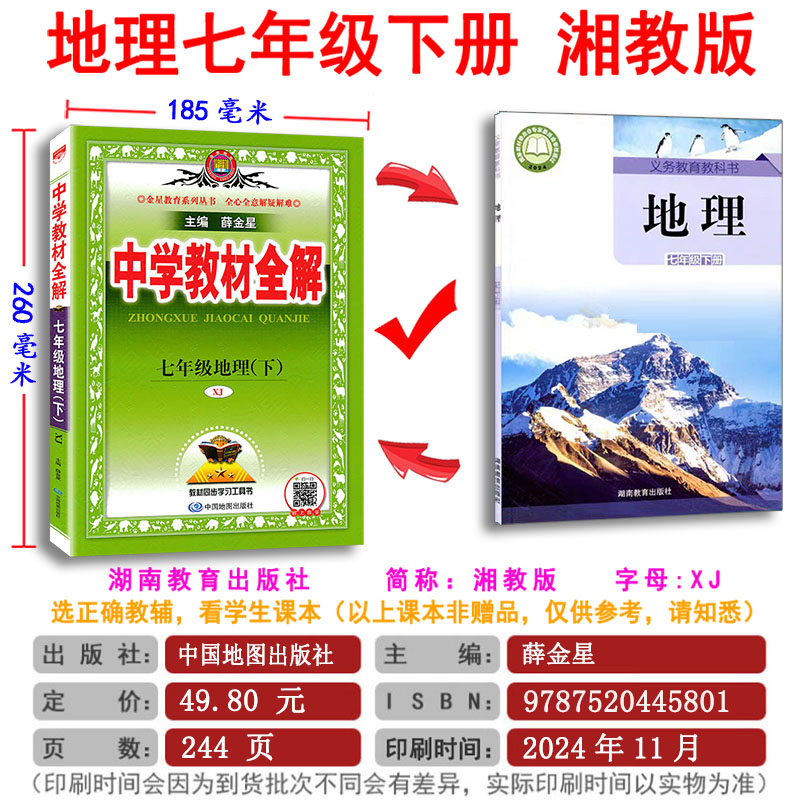 湖南教育版 XJ版 薛金星中学教材全解初一7年级下同步课本教材全解完全解读初中全解教辅资料书 初中地理七年级上册湘教版 新初一
