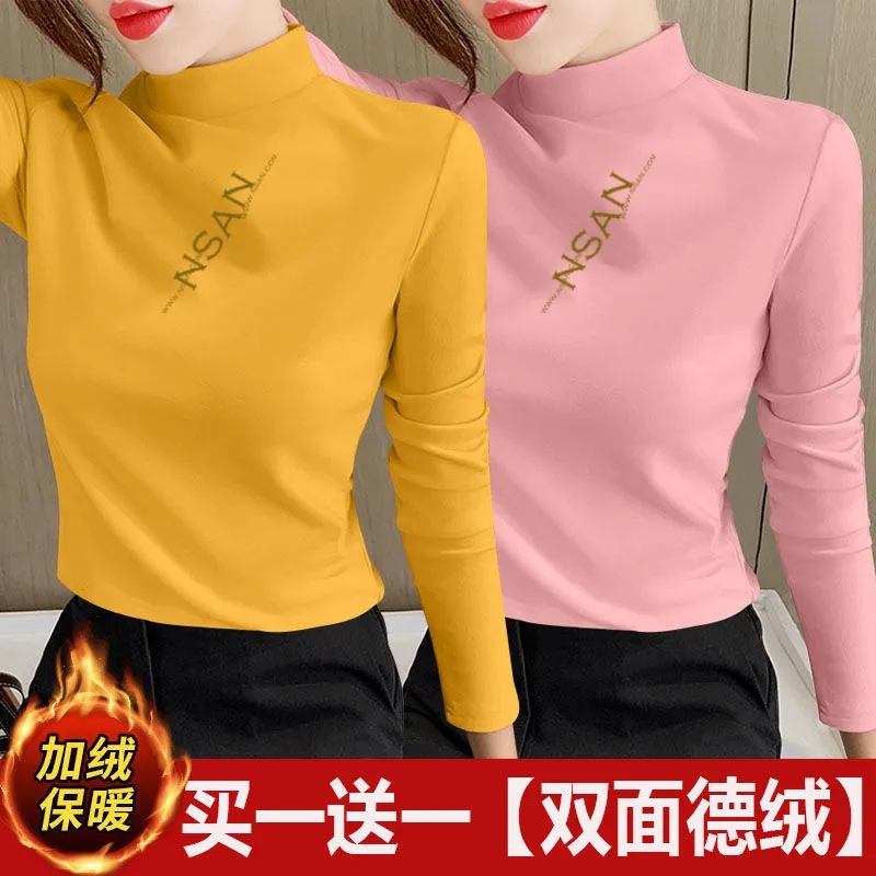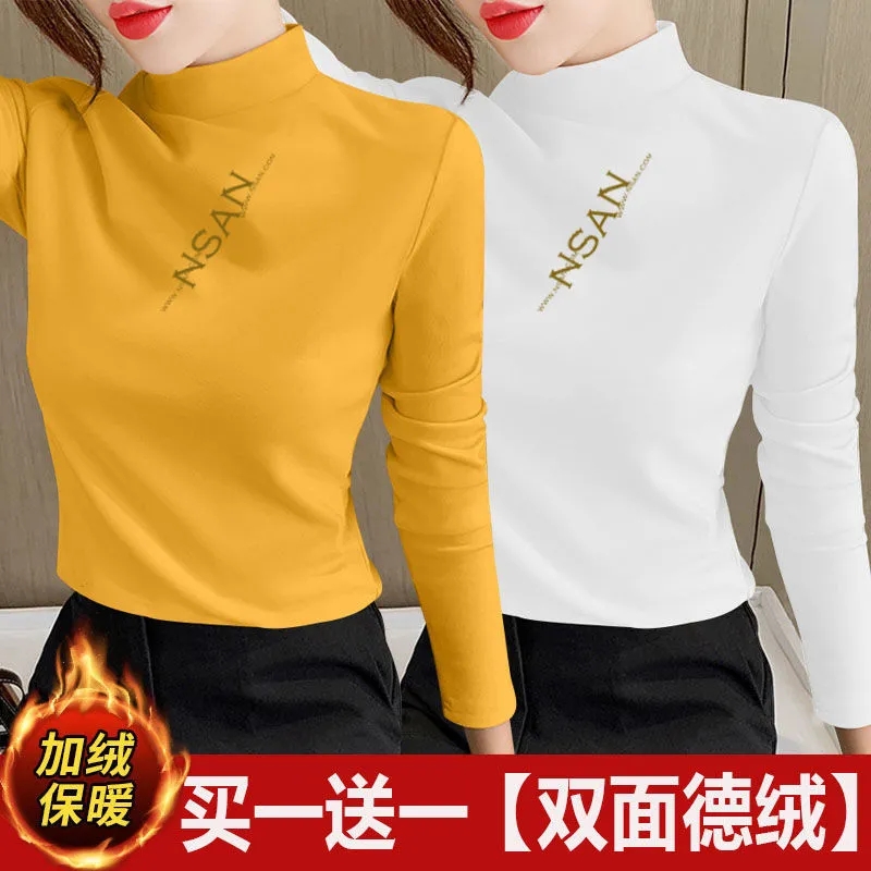 两件装 百搭长袖 半高领德绒保暖打底衫 修身 T恤 女2021秋冬新款 单