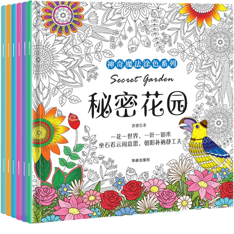 正版 手绘画涂鸦填色本成人减压涂色书大人儿童小学生神秘花园奇幻森林画入门自学零基础教材簿 全6册秘密花园涂色书