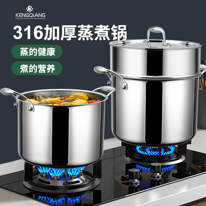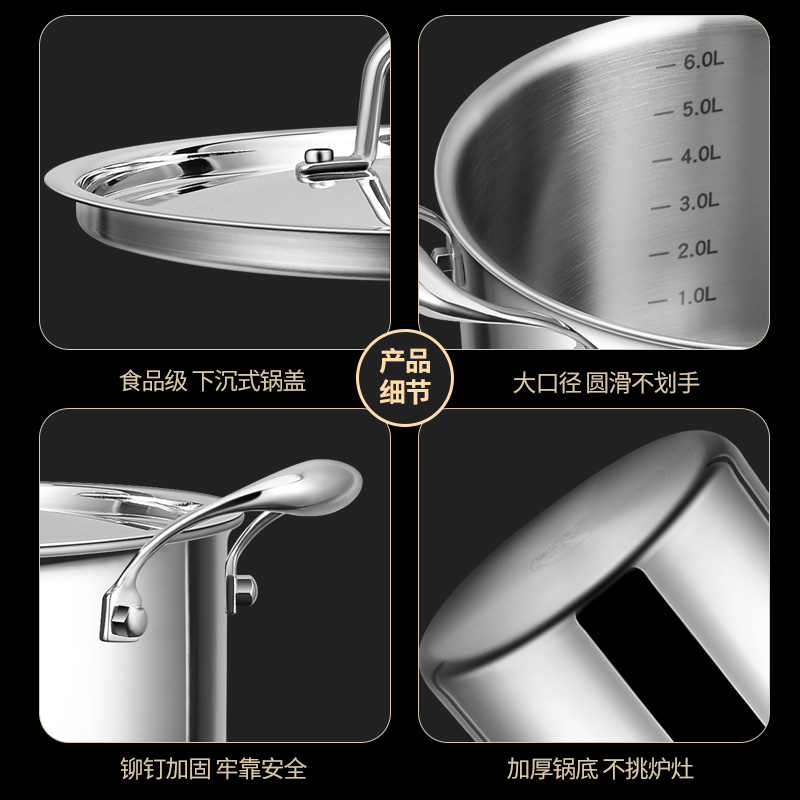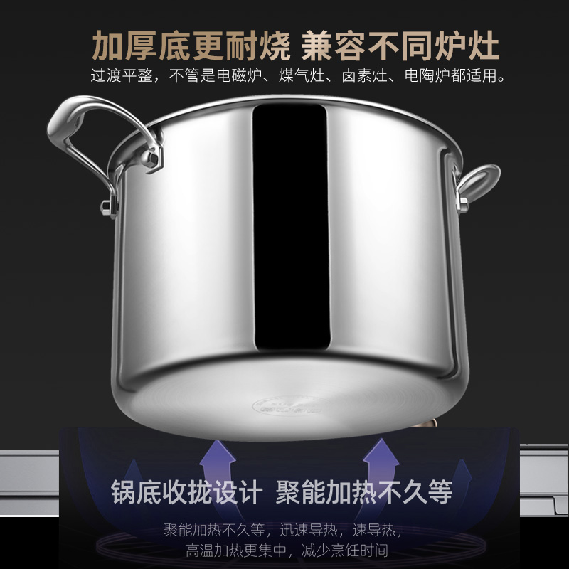 铿锵316不锈钢汤锅家用加深煮粥卤肉炖锅电磁炉专用大容量高汤锅