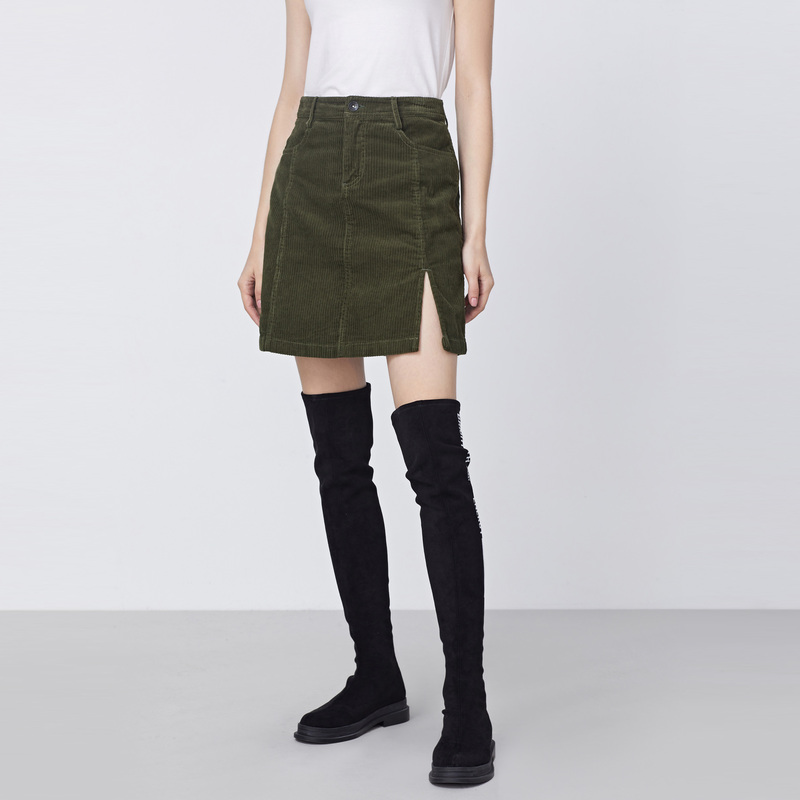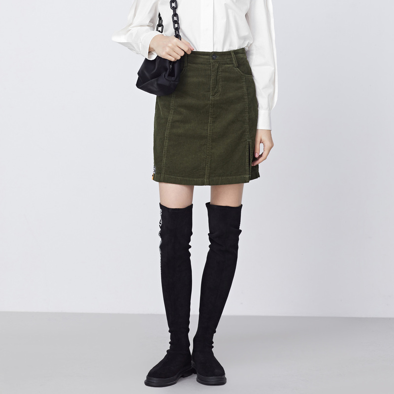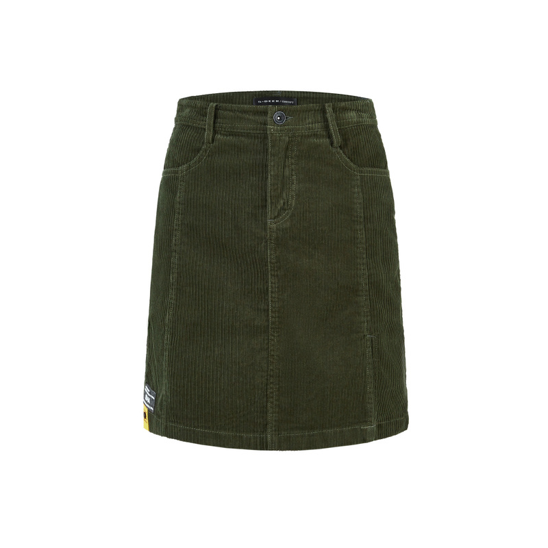 sdeer圣迪奥冬季 插袋撞色字母灯芯绒A字半身裙S21481310 女装