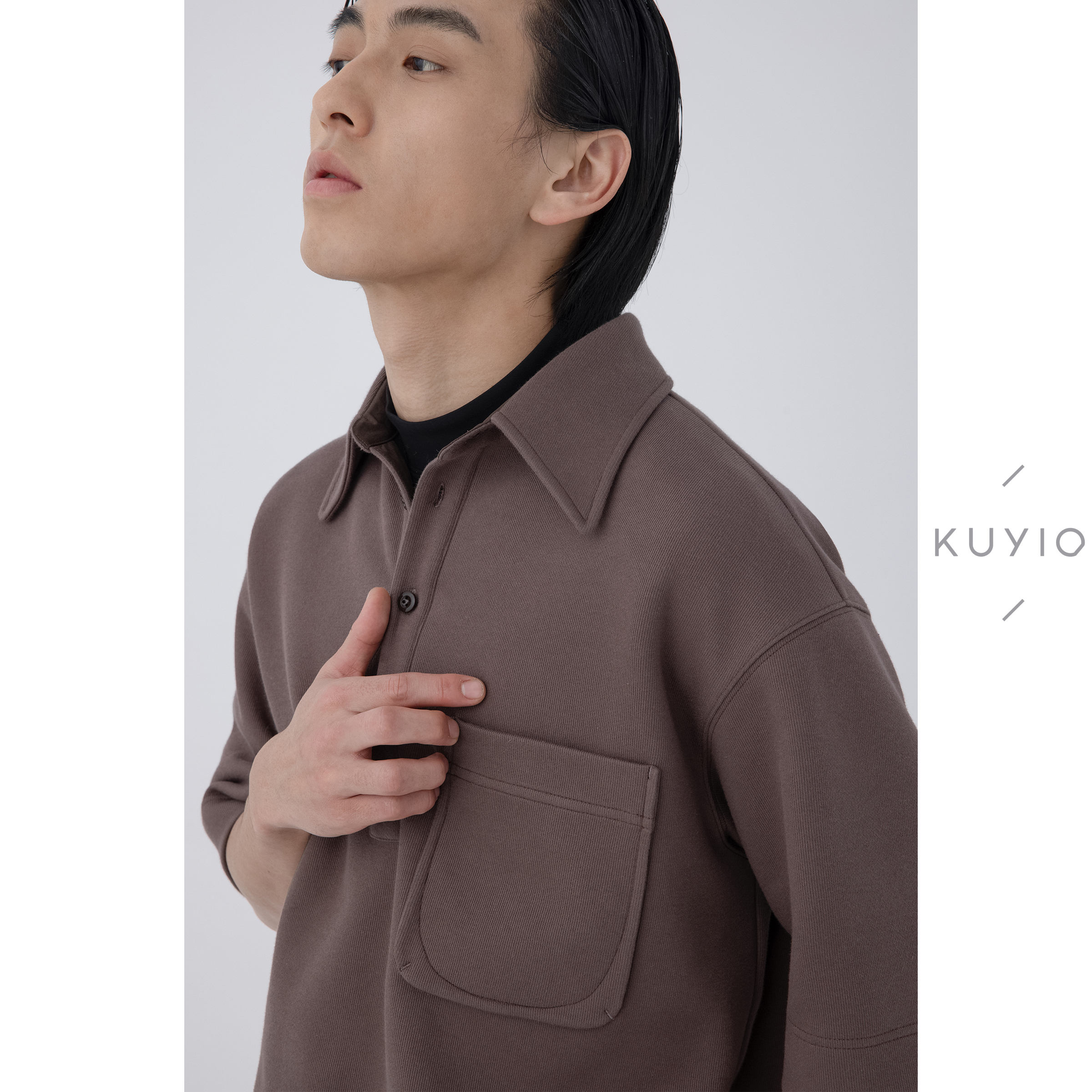 新款 体恤胖子宽松免烫抗皱POLO衫 大码 无感空气格翻领长袖 男士 秋季