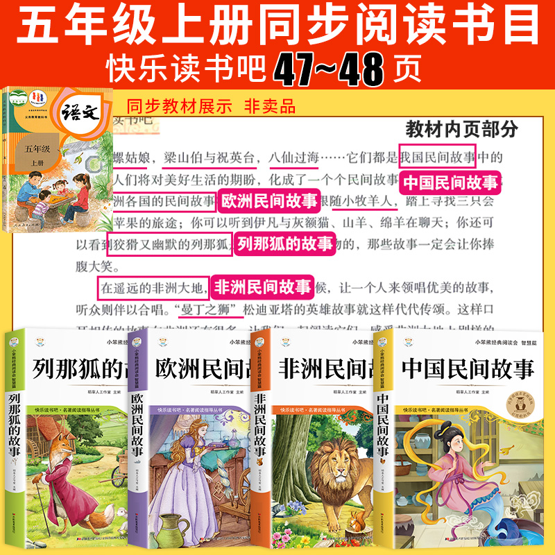 故事快乐读书吧五上阅读书籍5配套人教版 课外书田螺姑娘精选欧洲非洲民间列那狐 书目Q 中国民间故事五年级上册必读正版 全套4册