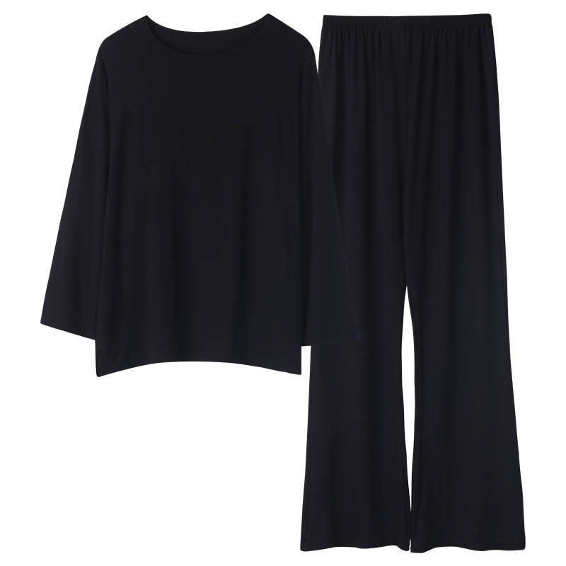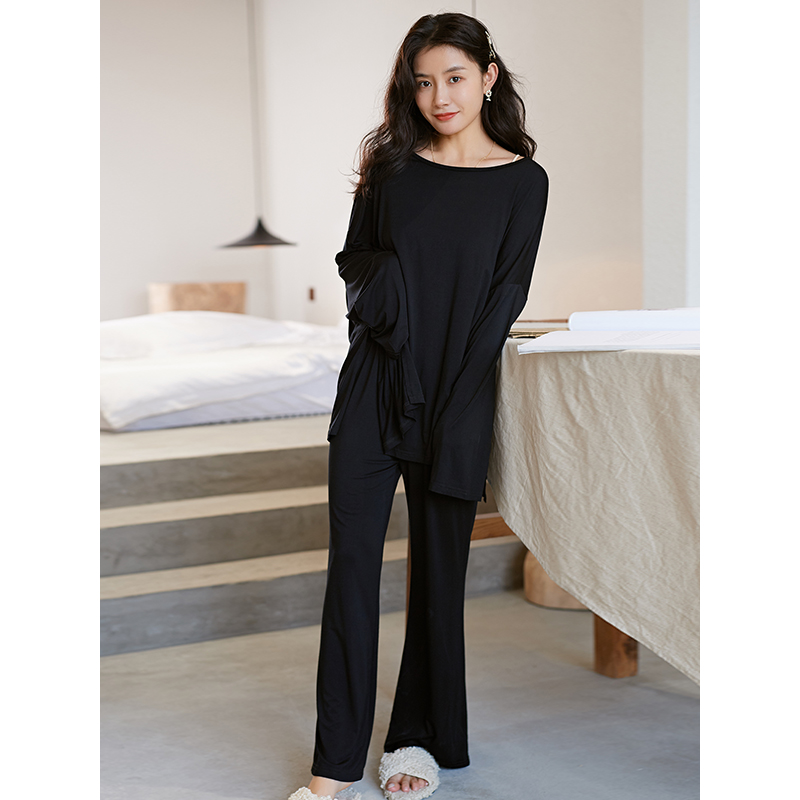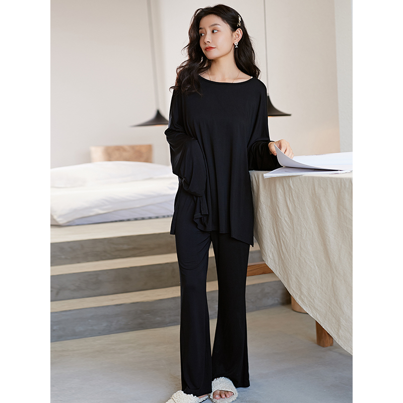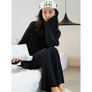 家居服冬款 宅格格性感莫代尔睡衣女带胸垫春秋季 宽松大码 套装 长袖