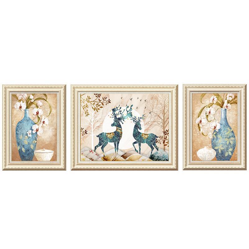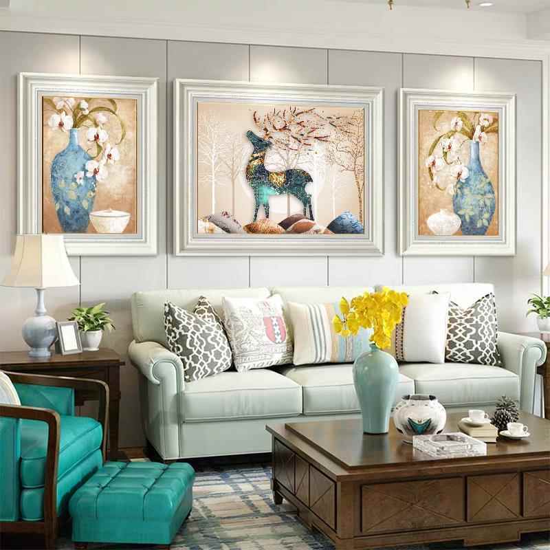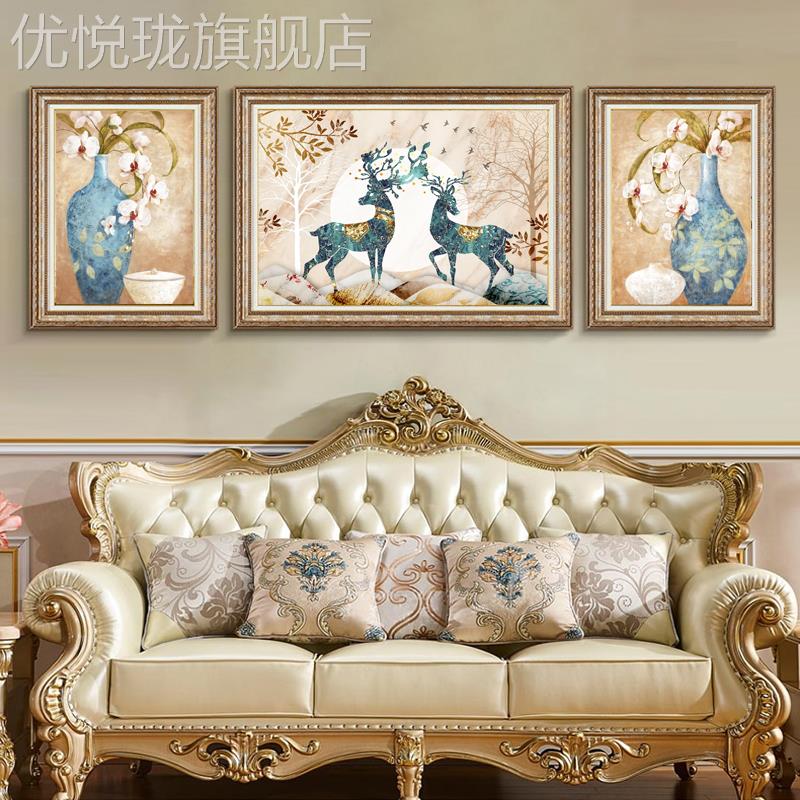 网红网红现代厅发饰欧式 墙景挂画客欧大三联沙气画餐厅壁画 简背装
