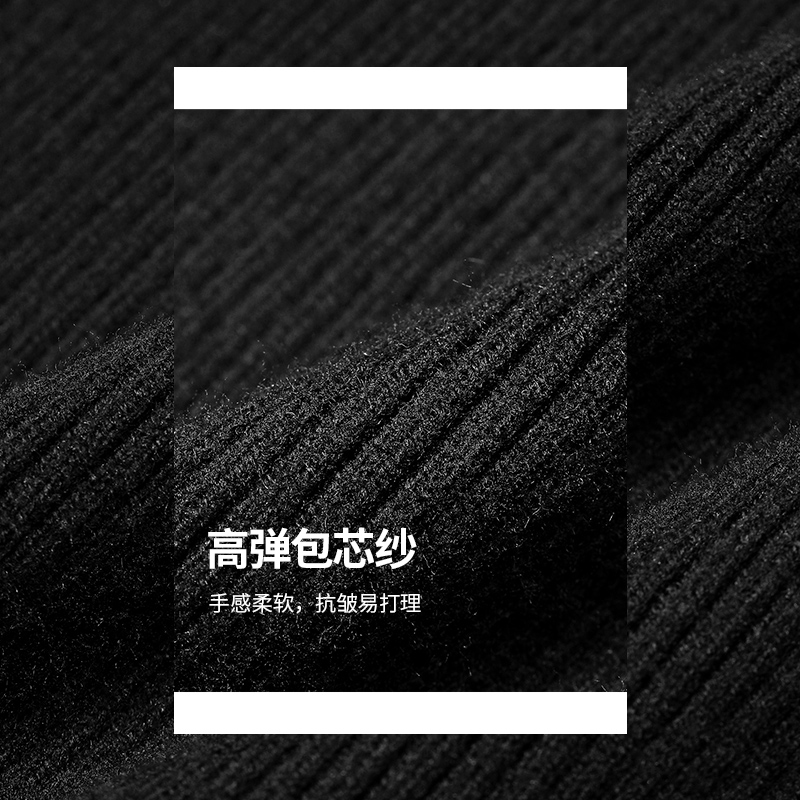 MOVEUP幻走2024冬季 .FUN系列不对称抽褶半高领针织打底连衣裙 新款