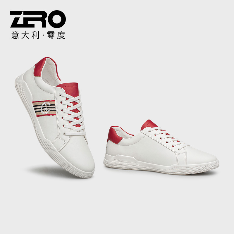 小白鞋 真皮运动休闲皮鞋 男防滑圆头 2024男士 100%全牛皮啄木鸟男鞋