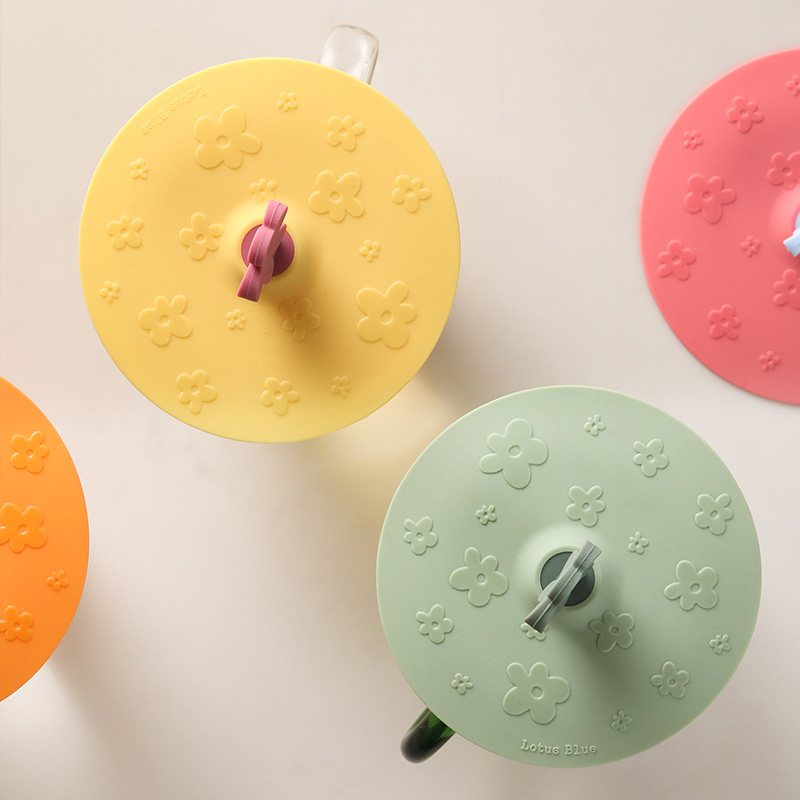 蓝莲花杯盖硅胶耐高温食品级盖子水杯马克杯通用大口径杯子软碗盖