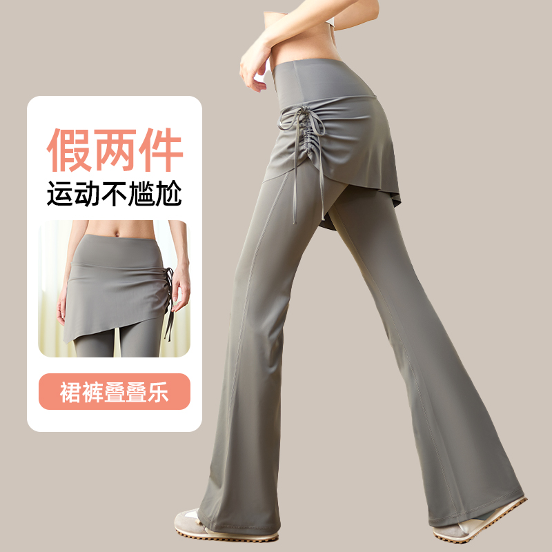 普拉提训练服 高腰提臀运动健身喇叭裤 瑜伽裤 女2025假两件屁帘裙裤