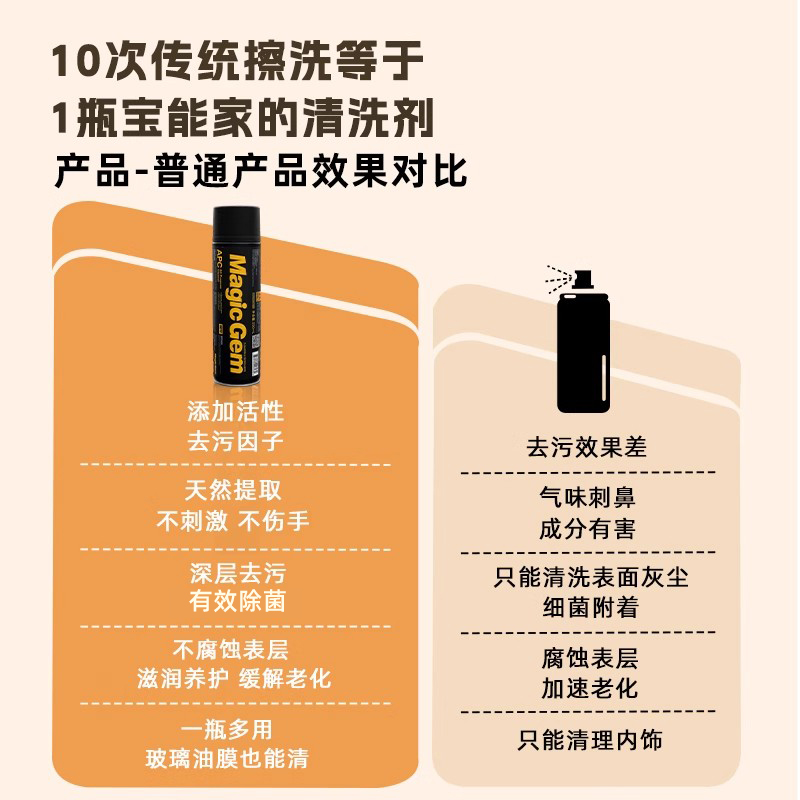 宝能泡沫清洗剂前挡风玻璃油膜去除汽车专用内饰家用清洁剂免水洗