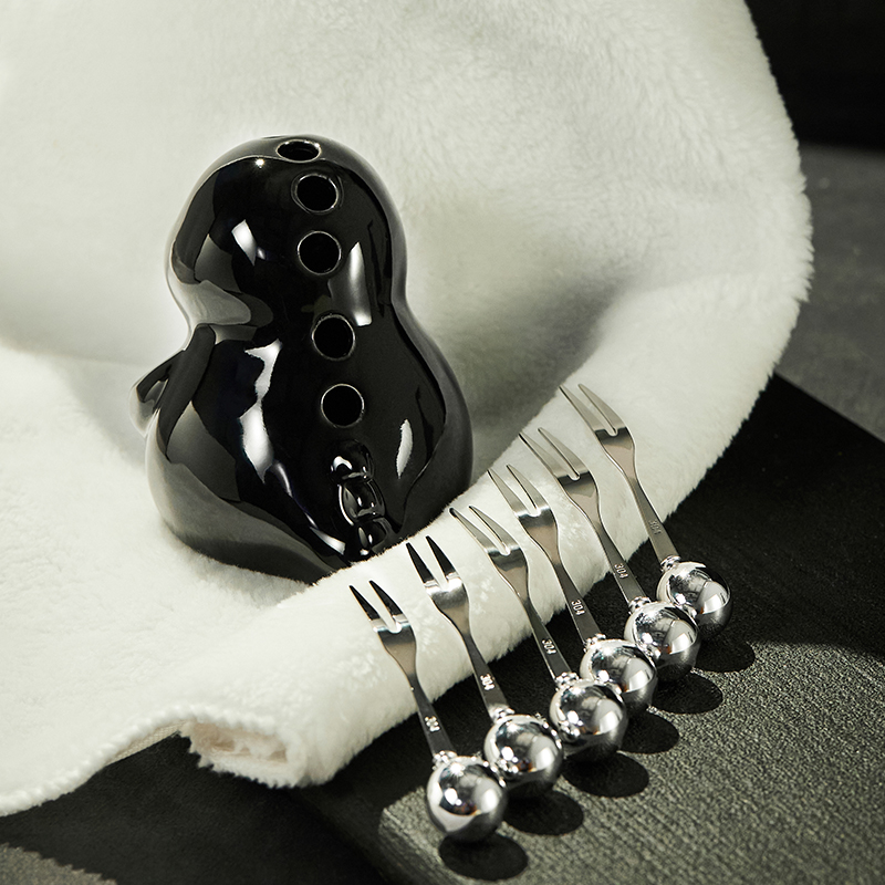 萌趣小恐龙果叉筒套装 创意水果叉不锈钢高级感收纳罐可爱果叉