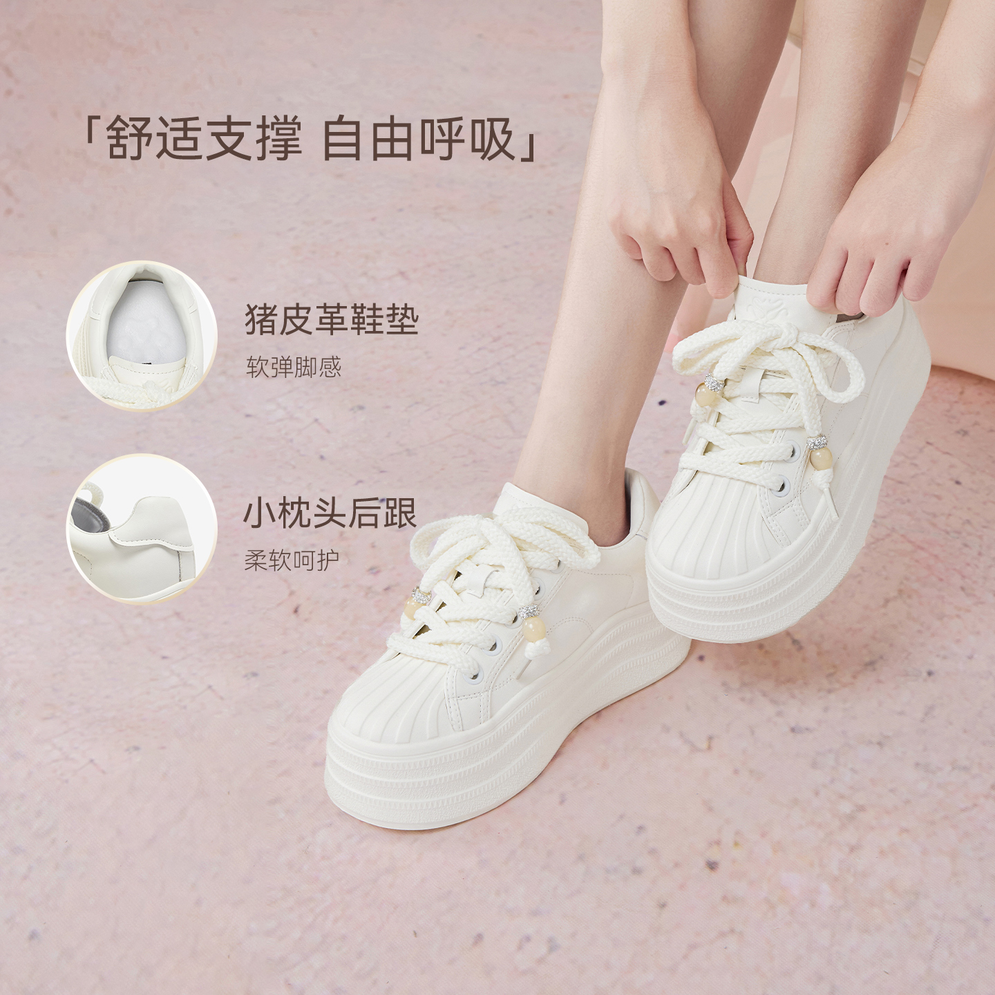 休闲鞋 女鞋 秋季 轻便软底舒适百搭鞋 李宁小白鞋 子增高运动鞋 板鞋