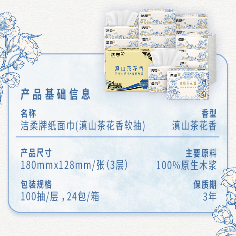 洁柔纸巾抽纸立体压花绵柔感餐巾纸3层90抽20包整箱卫生纸家用