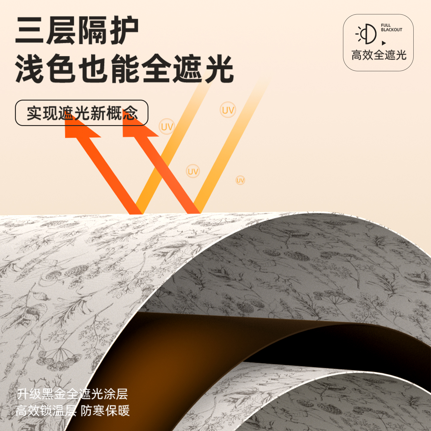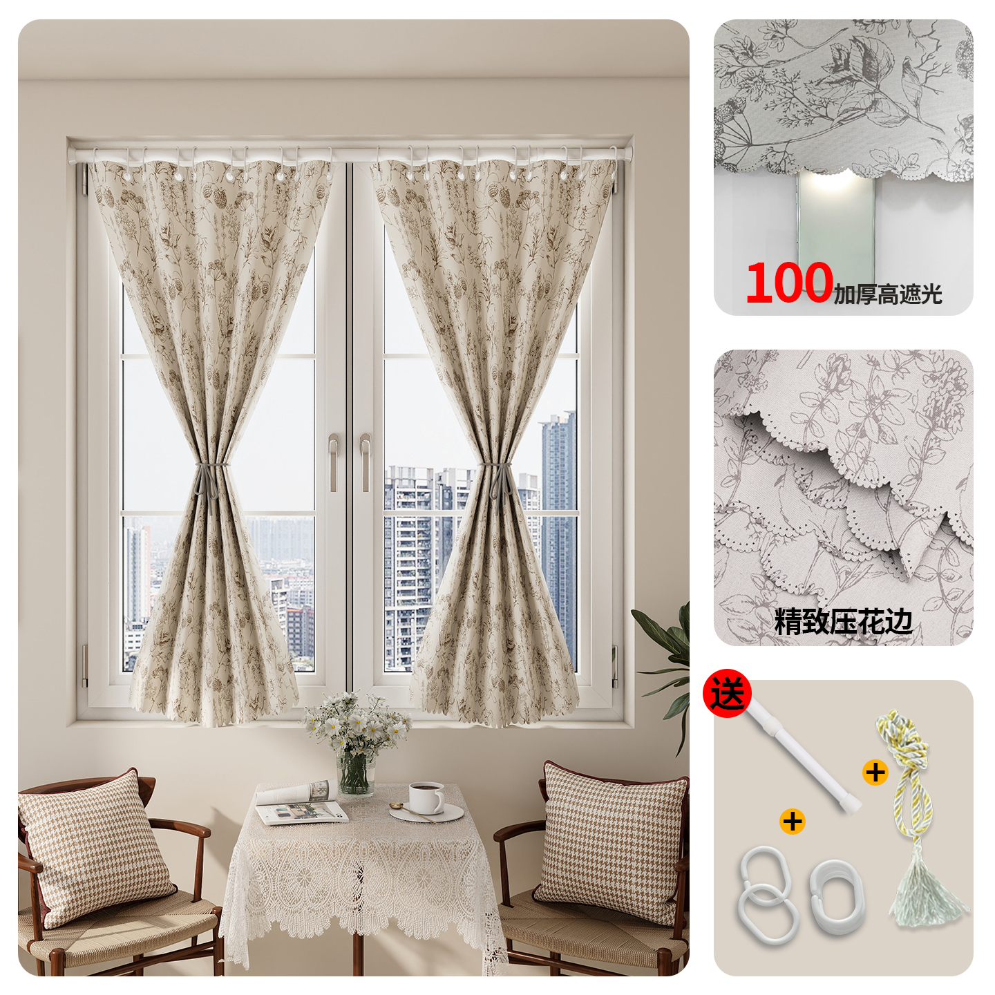 出租屋窗帘布遮光卧室2025新款 带杆全套免打孔窗户防晒隔热遮阳帘