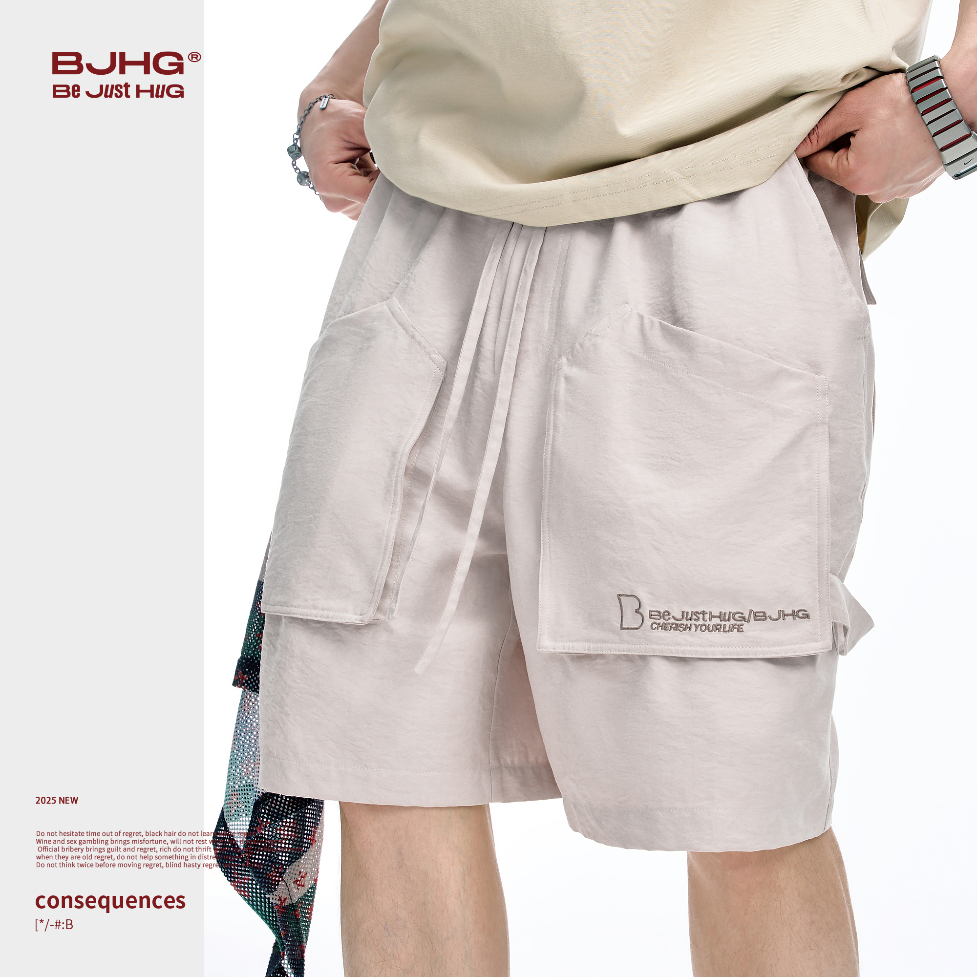 新款 2025夏季 运动冰丝裤 子男休闲美式 HG真维斯山系男士 五分裤 短裤