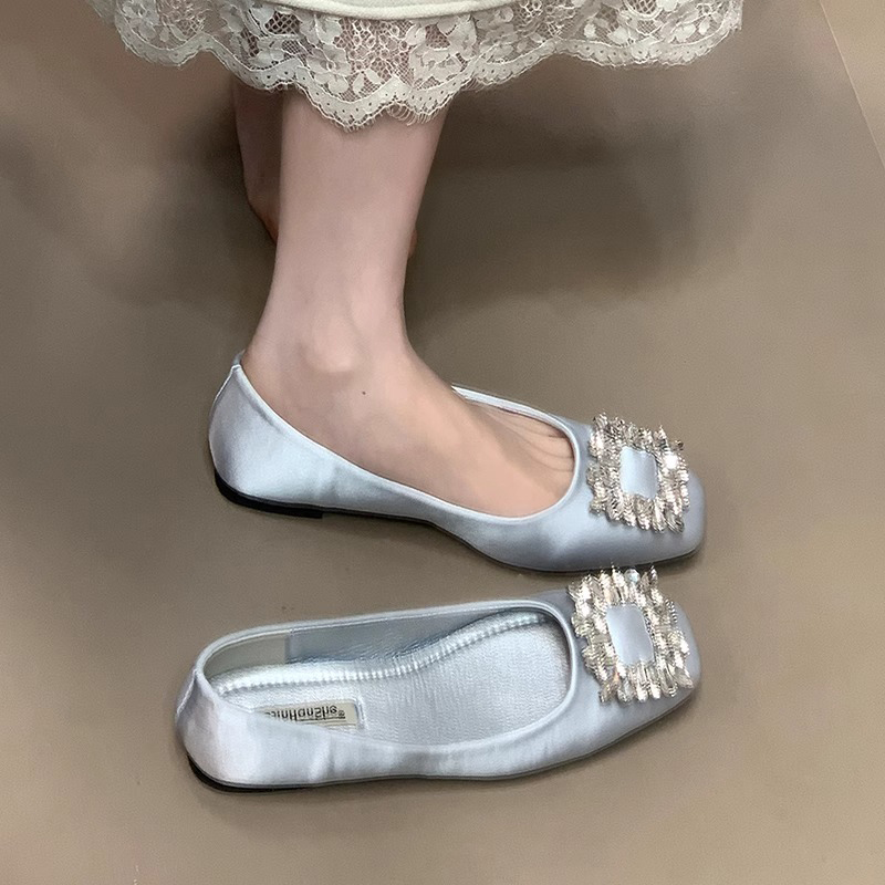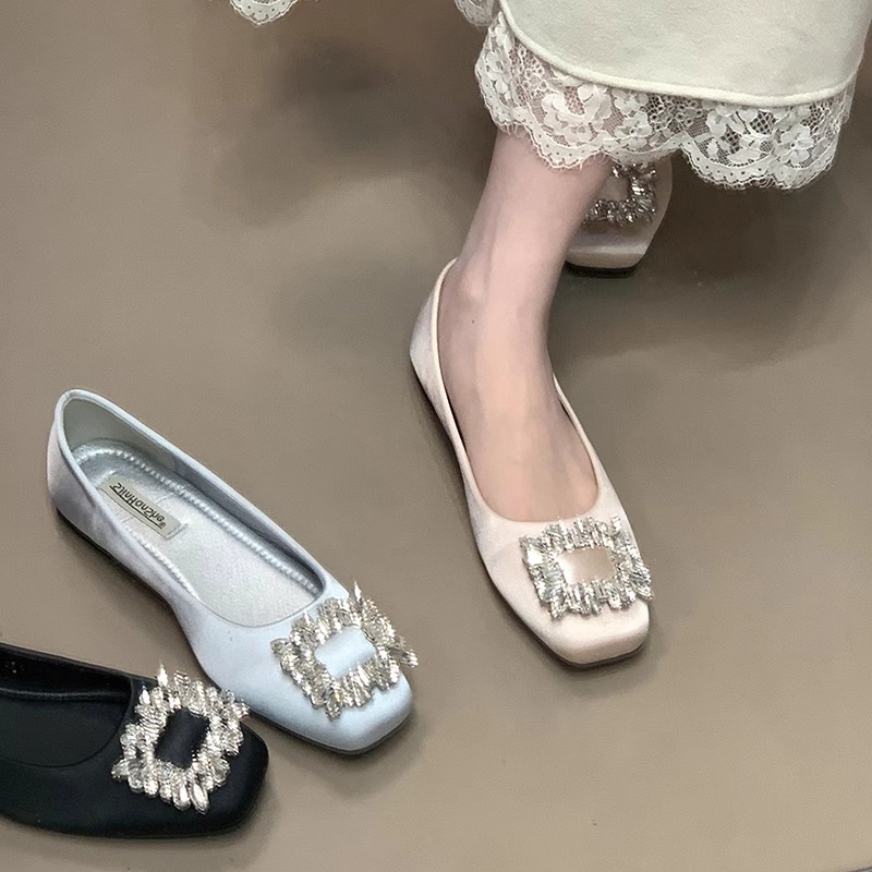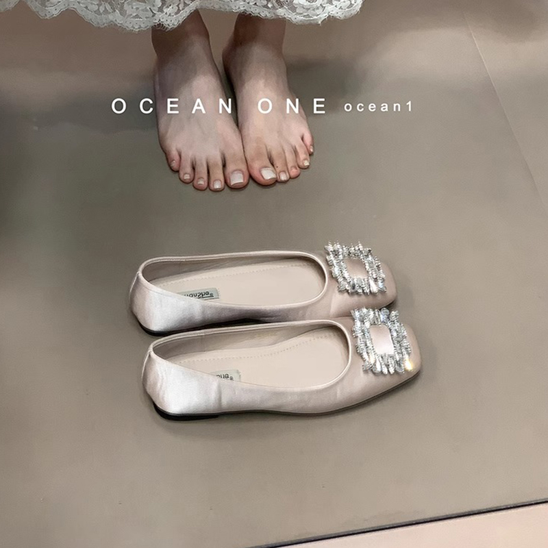 one 通勤晚晚鞋 缎面浅口方头单鞋 温柔水钻平底鞋 女2025新款 ocean