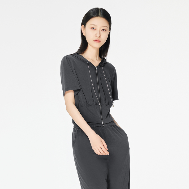 休闲运动风连帽卫衣今年流行短袖 新款 上衣 外套2025年秋季 飘蕾短袖