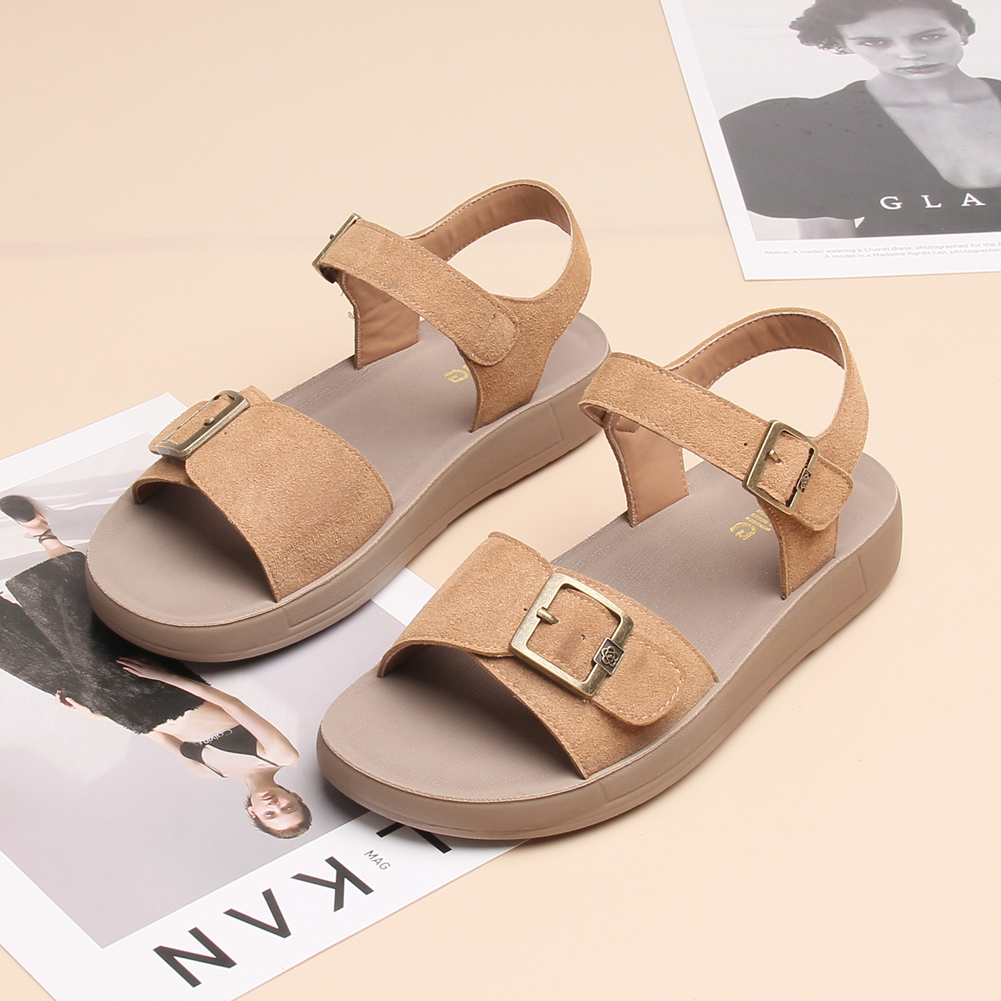 真皮透气防滑软底牛皮休闲中年拖鞋 骆驼男鞋 爸爸凉鞋 新款 2025夏季