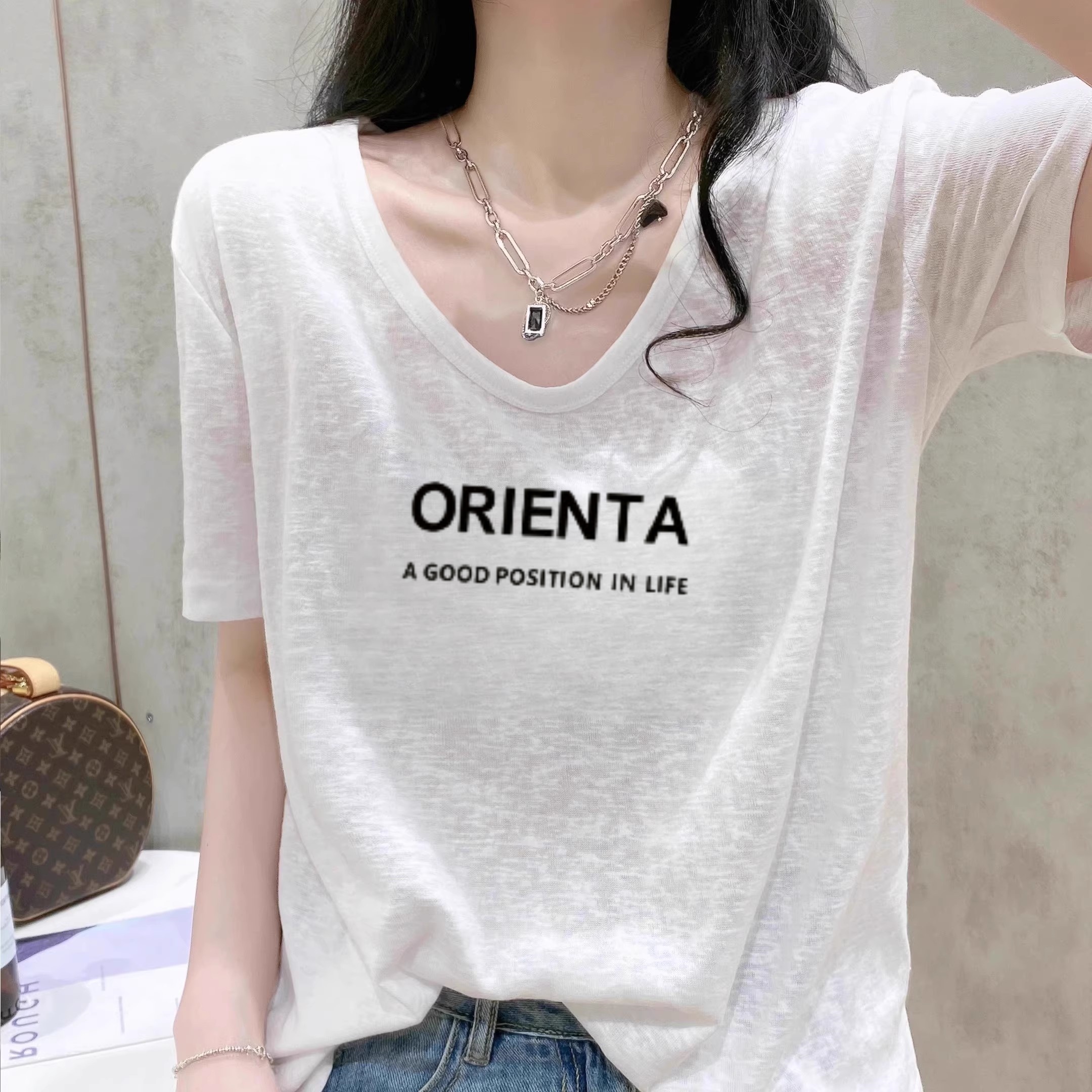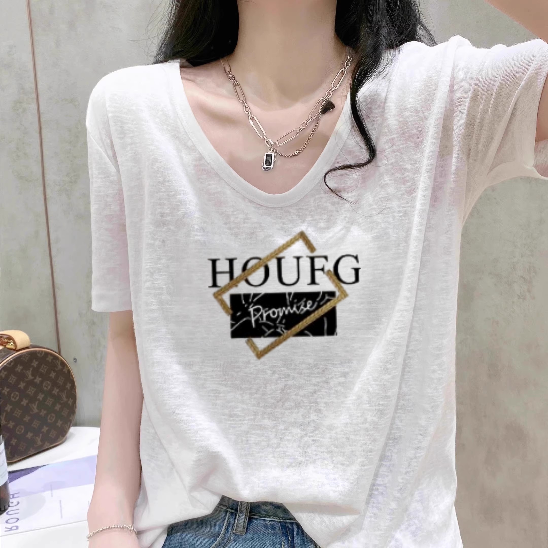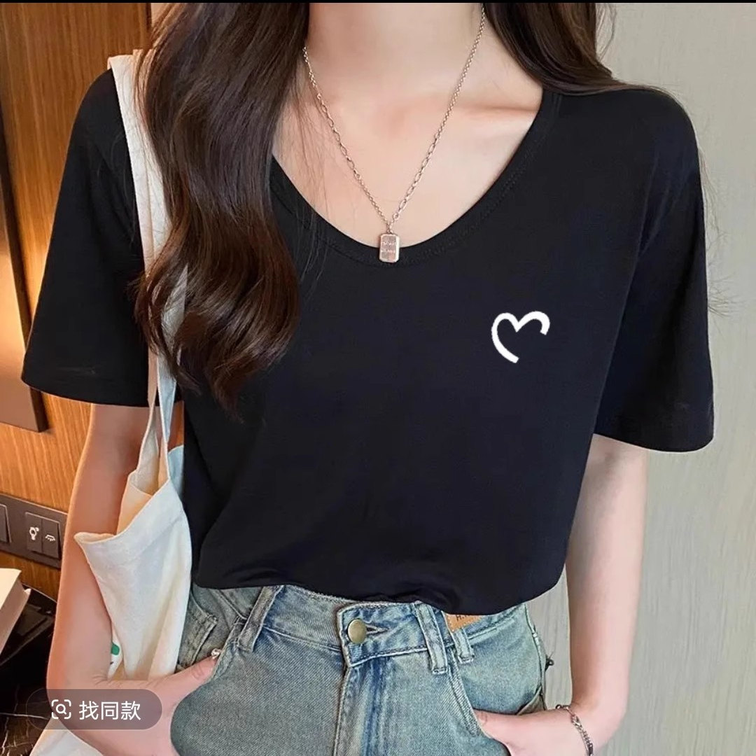 大码 新款 胖mm凉感v领上衣 T恤女宽松显瘦气质2025年夏季 雪花棉短袖