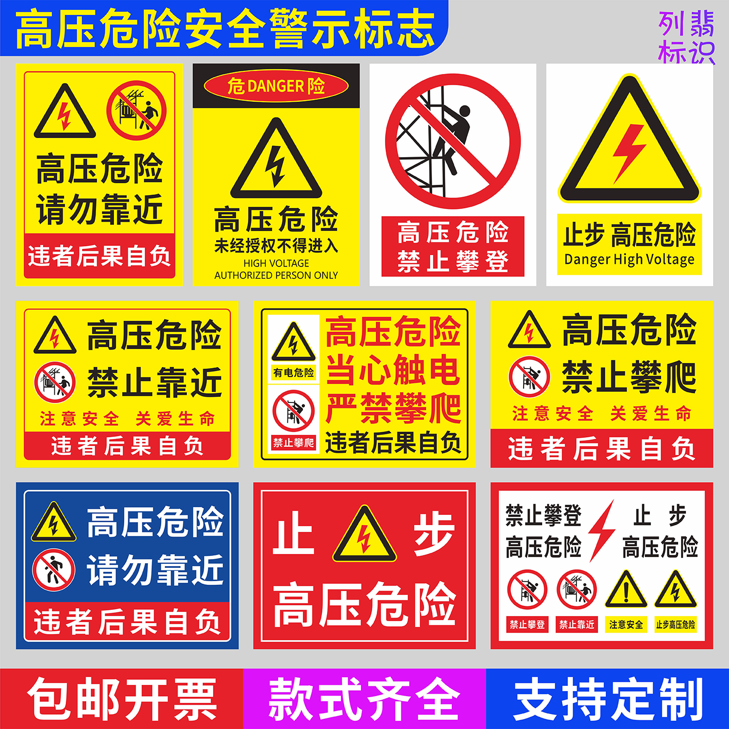高压危险请勿靠近注意安全标识牌当心触电严禁攀爬攀登警示警告标志配电房重地未经许可禁止入内铝板提示挂牌