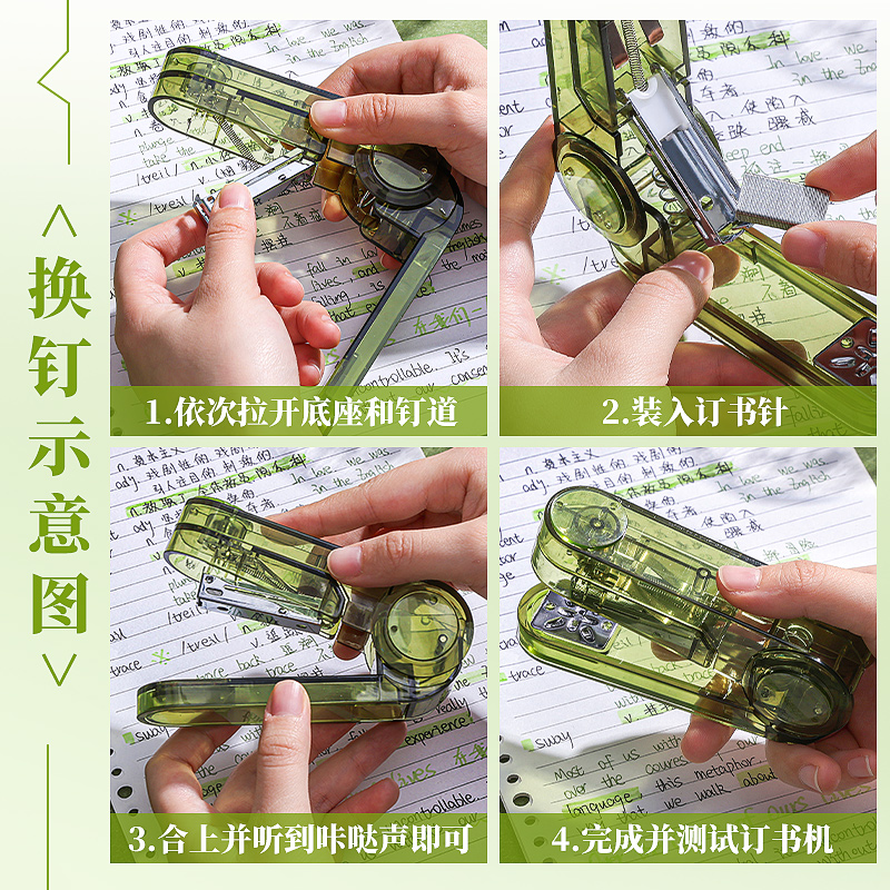 360度可旋转订书机中缝订书器装 订机小学生用钉书外卖家用定书机初中生专用多功能办公用透明省力大小号文具