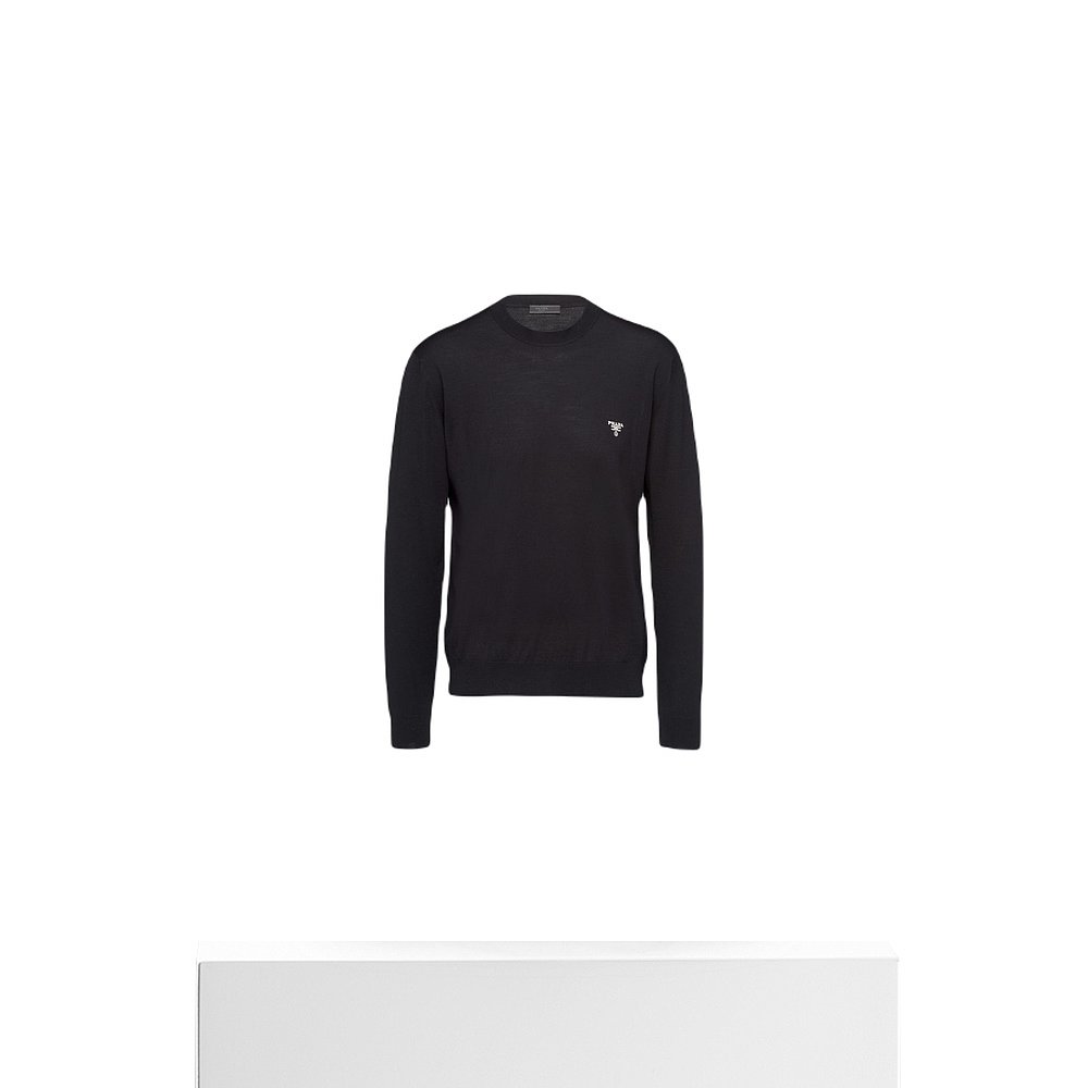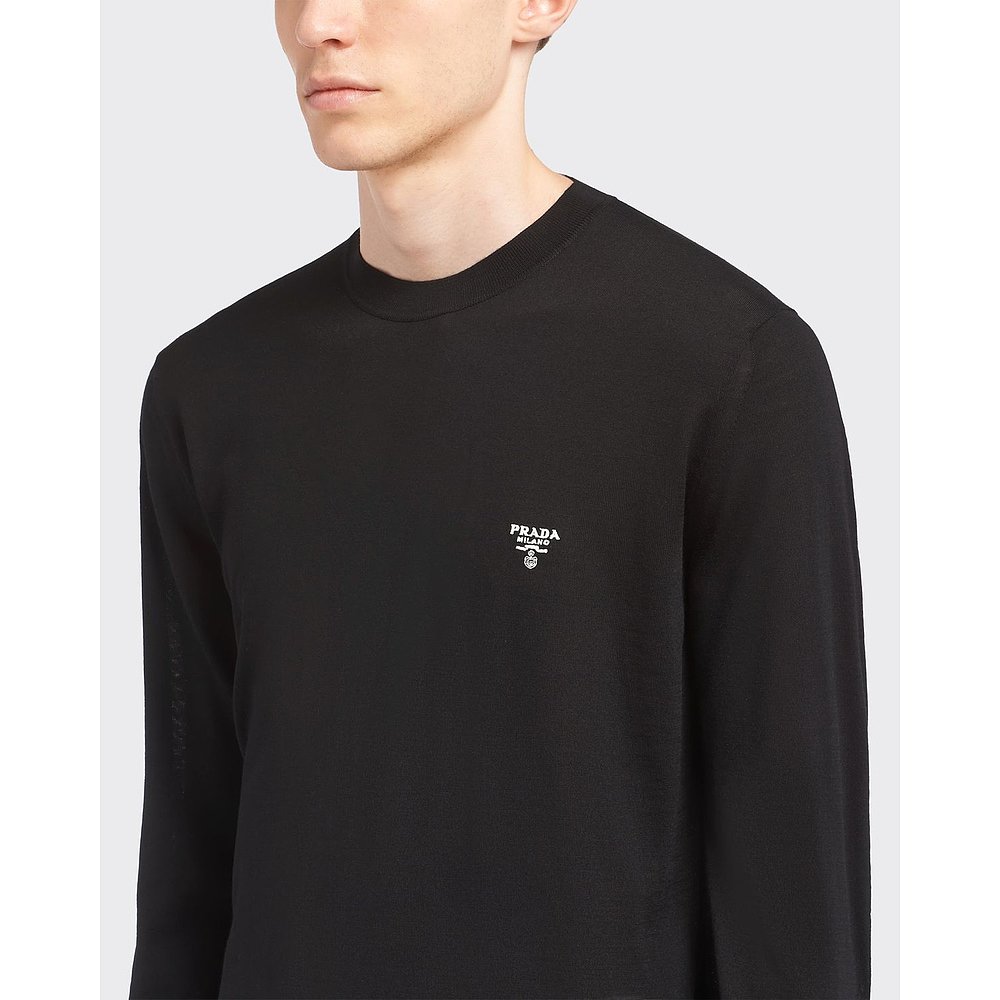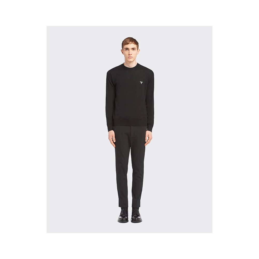香港直邮潮奢 黑色羊毛徽标针织套衫 Prada 男士 普拉达 1h可退