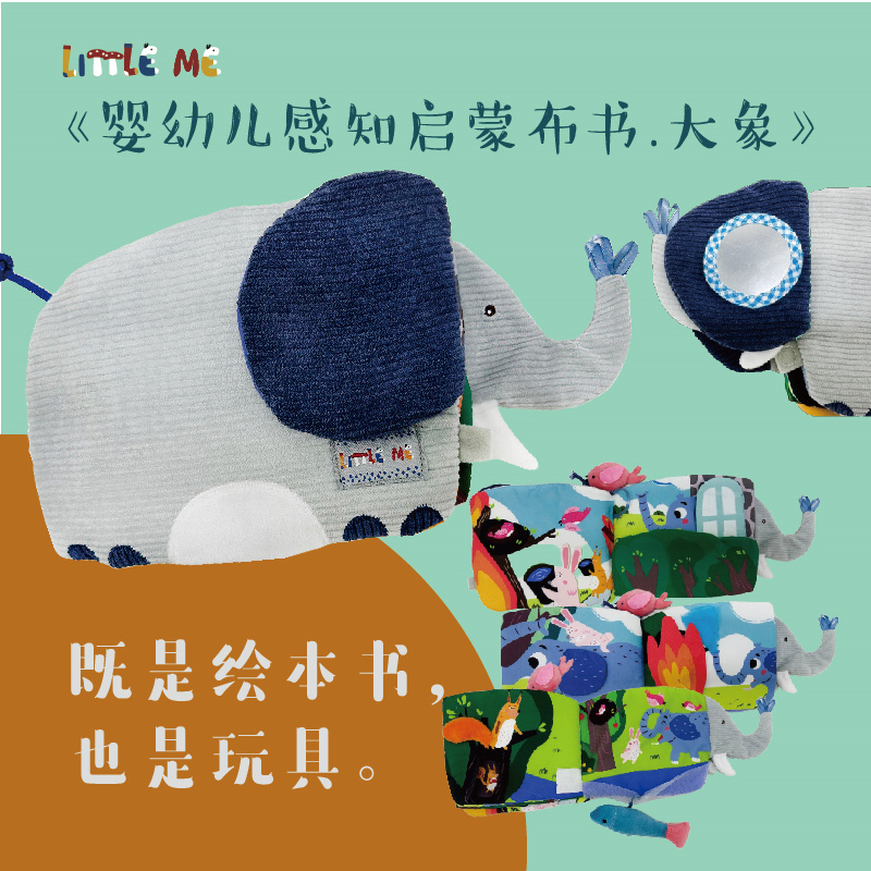 可水洗撕咬撕扯 3岁婴幼儿童触觉色彩视觉美感绘本启蒙认知早教玩具布书 给孩子满月新生儿礼物 婴幼儿感知启蒙布书.大象
