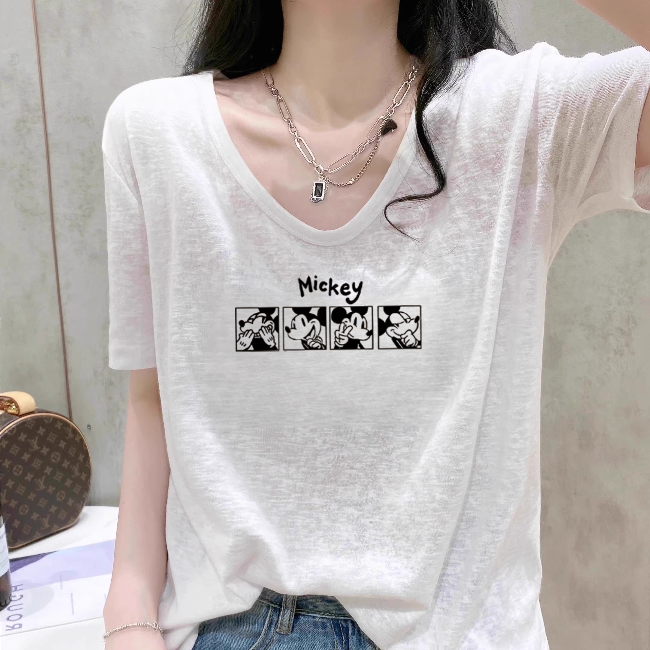 大码 新款 胖mm凉感v领上衣 T恤女宽松显瘦气质2025年夏季 雪花棉短袖