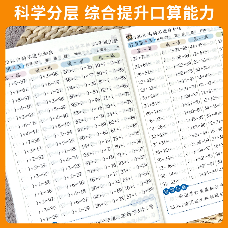 三上二上一上人教版 口算天天练 二升三数学口算每天一练 一升二 小学生练习纸练习题练习册暑假2升3 一年级二年级三年级上册同步