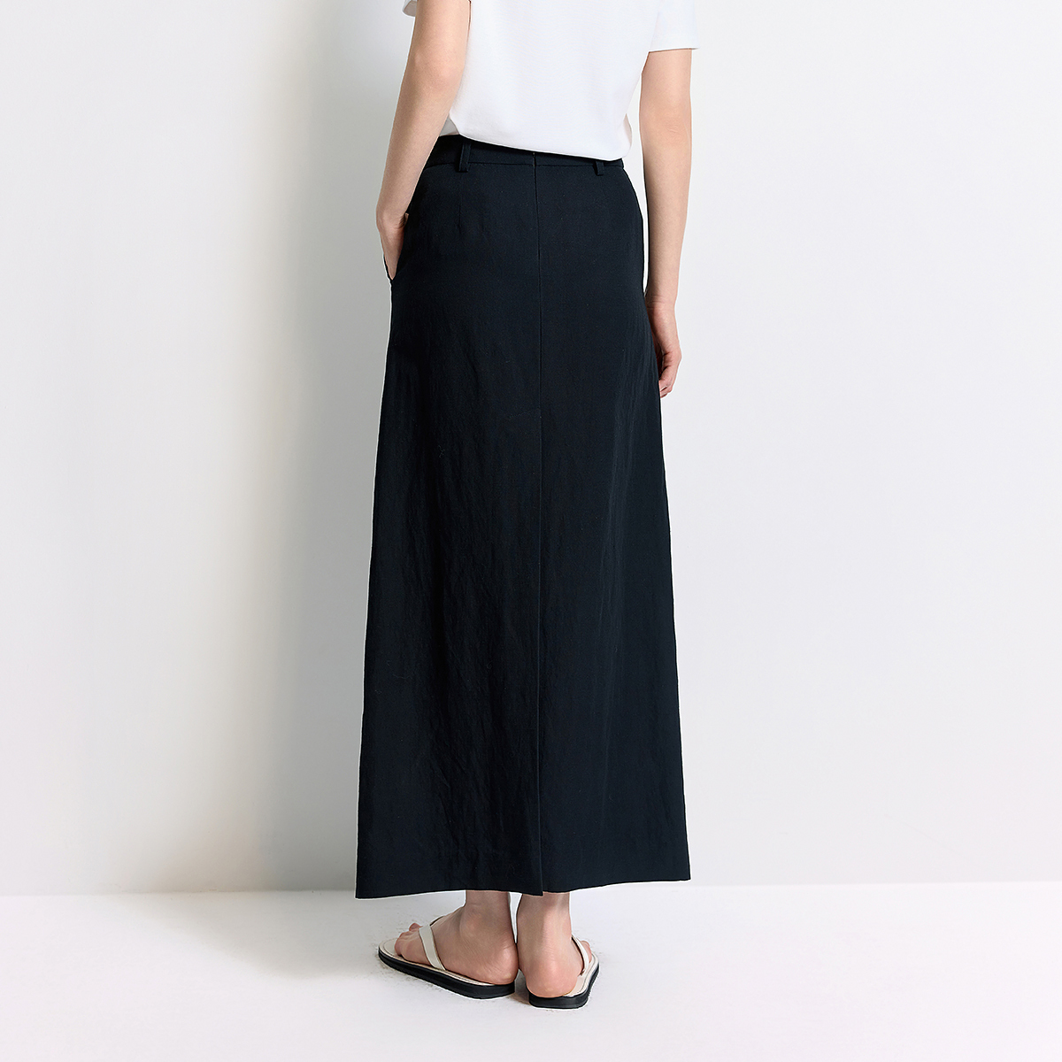 OCHIRLY欧时力 进口亚麻a字半身裙长裙气质开衩显瘦2025早秋新品
