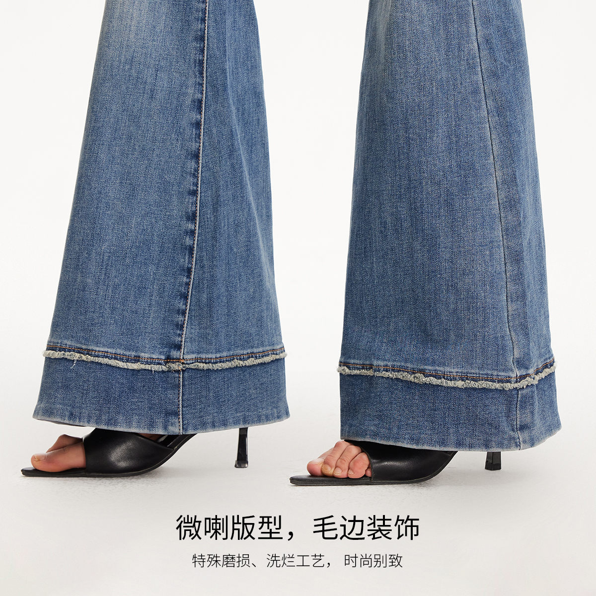 新款 女2025夏季 商场同款 裤 Vero 脚磨毛中腰复古微喇裤 Moda牛仔裤
