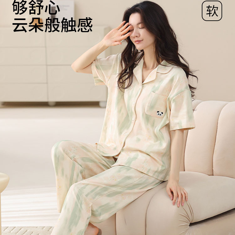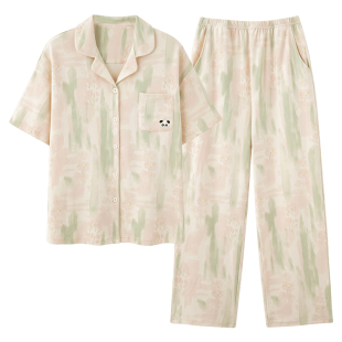 夏甜美薄款 可外穿家居服套装 开衫 长裤 短袖 猫人纯棉睡衣女2025新款