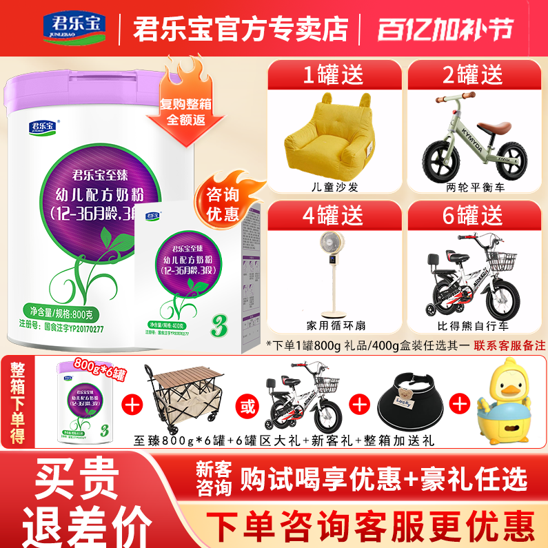 君乐宝奶粉至臻3段奶粉罐装 36个月添加cpp幼儿配方奶粉800g