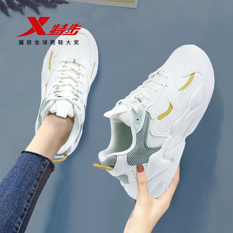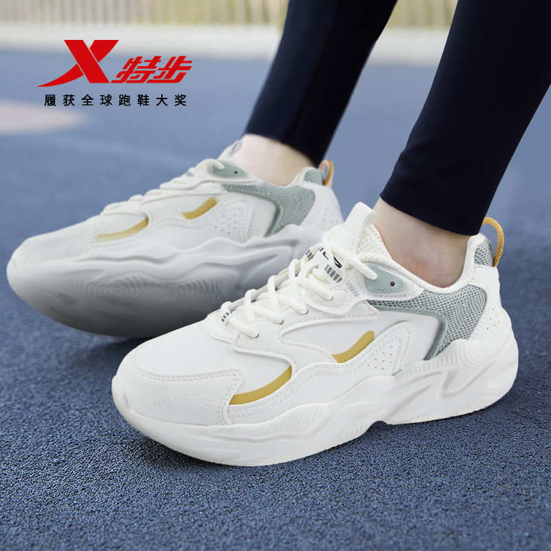 轻便百搭休闲运动鞋 特步星陨ET女鞋 革面舒适老爹鞋 夏季 2025年新款