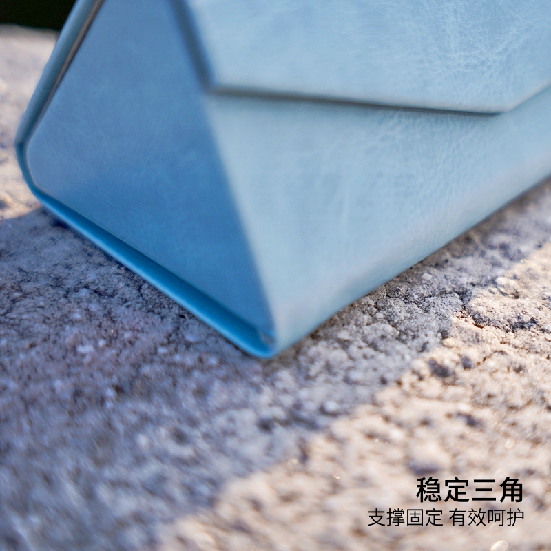手工皮纹三角易收纳镜盒折叠韩版 太阳眼镜盒可折叠简约磁吸墨镜盒