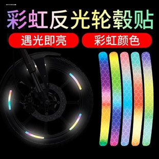 汽车轮毂反光贴夜光防撞电动车自行车摩托车轮胎装 饰贴七彩荧光贴