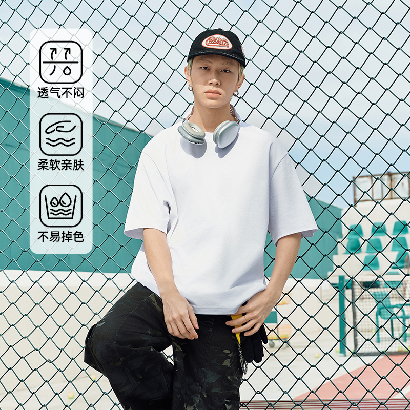 夏季 回力美式 五分袖 男重磅纯棉宽松大码 男生卡通印花t恤K 潮牌短袖