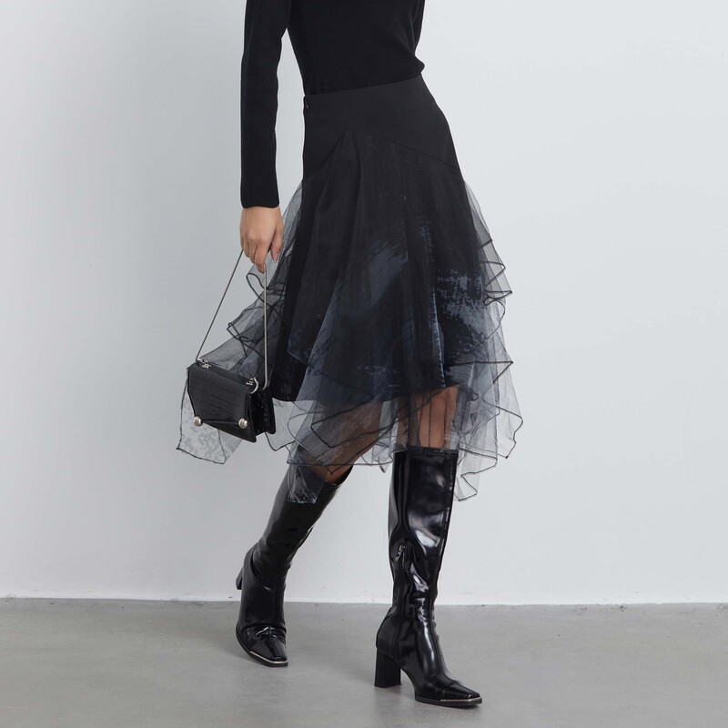 sdeer圣迪奥秋装 晕染网纱不规则A字半身裙长裙S23381102 女装