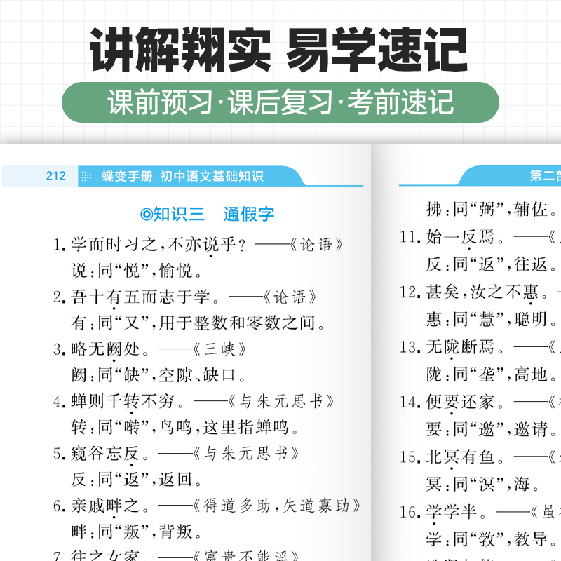 2025蝶变学园语文口袋书 初中基础知识手册中学教辅初一二三七八九年级通用知识清单工具书随身记中考备考复习资料预习复习