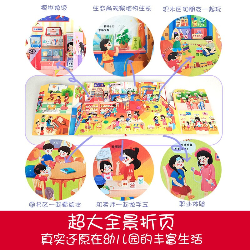 9岁绘本阅读宝宝启蒙认知书籍探索幼儿园场所奥秘 揭秘幼儿园 揭秘世界翻翻书儿童3d立体书幼儿科普趣味翻翻看全景互动机关书3