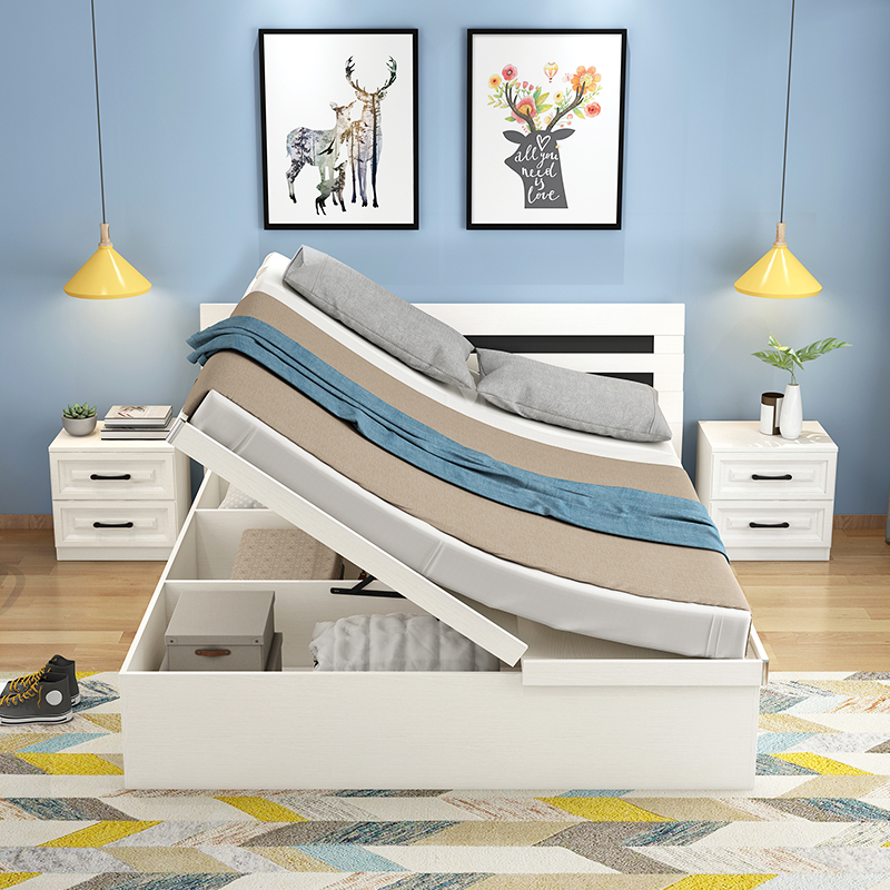 北欧双人床1.5米1.8米板式 床储物高箱床气动婚床简约侧开床榻榻米