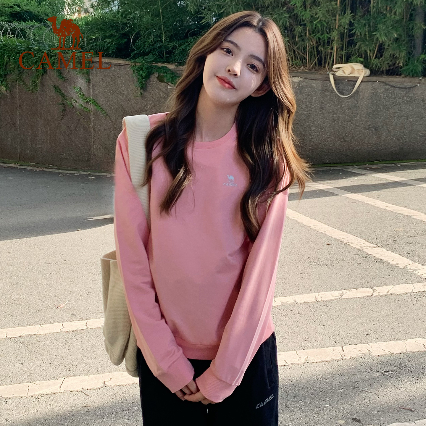 运动服长袖 情侣宽松休闲女装 上衣 薄款 骆驼套头圆领卫衣女新款