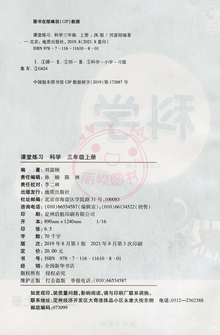 教材教科书同步训练天天练 知识梳理专项训练3上配套教科版 2024课堂练习家庭作业教科版 3三年级上册科学同步练习册课时单元