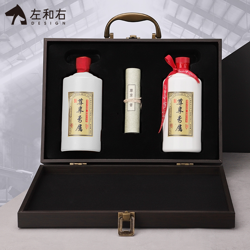 左和右高档白酒包装 通用2支白酒盒空盒定制专用 盒高端白酒瓶包装
